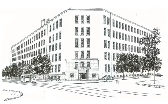 这栋七层的钢筋水泥大楼平面为向南开口的马蹄形。