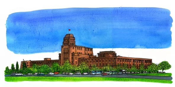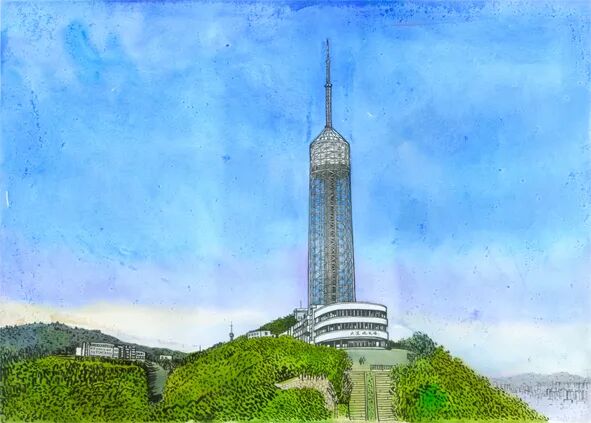 画作于1995年7月17日,几个月前,烟台街1号的大连自然博物馆旧馆完成了它的历史使命,三年后新馆出现在滨海的黑石礁。