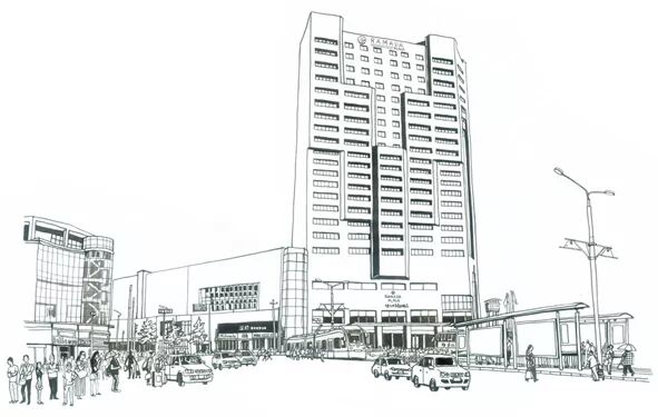 大连宾馆是一座典型的巴洛克式建筑,中心入口的墨绿色拱式雨篷非常惹眼,赭黄色立面凹凸有序地营造出来的奇妙光影是玻璃幕墙无法企及的。