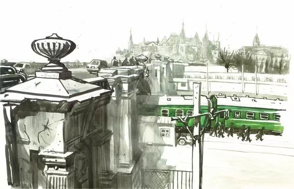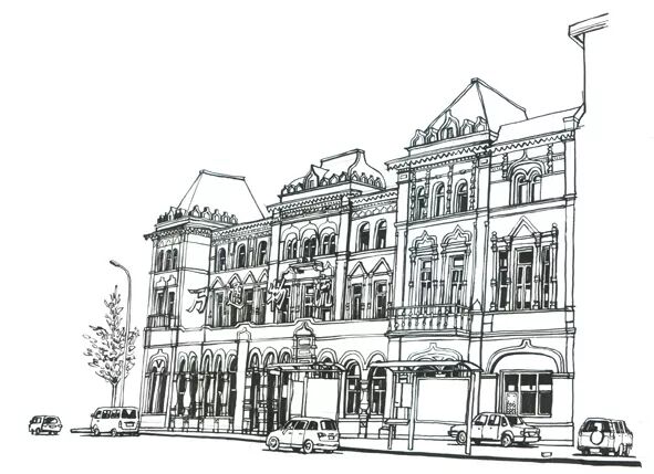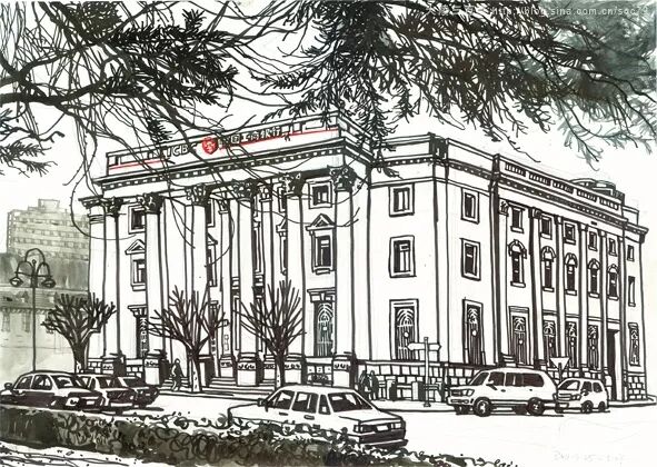 画作于2011年3月12日,这座有着一百多年历史的俄罗斯风格官邸即将隐没于薄暮中。
