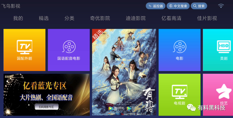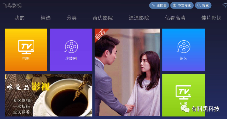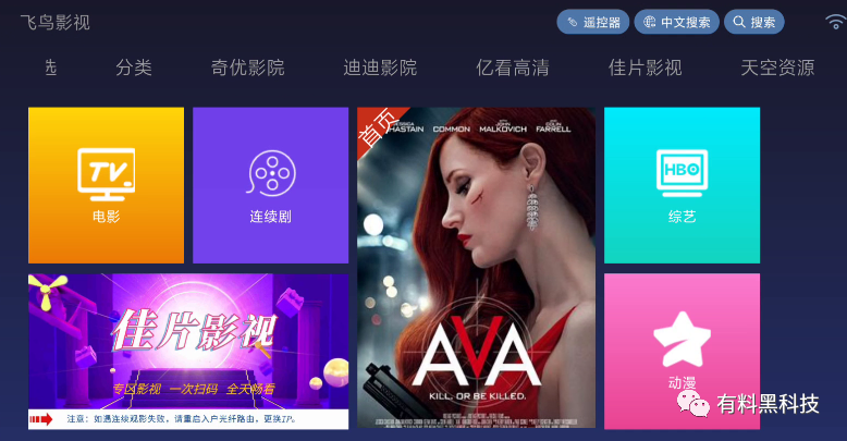 5.内置多个高清影院:天空影院、亿看高清影院、唯爱品影院、佳品影视;