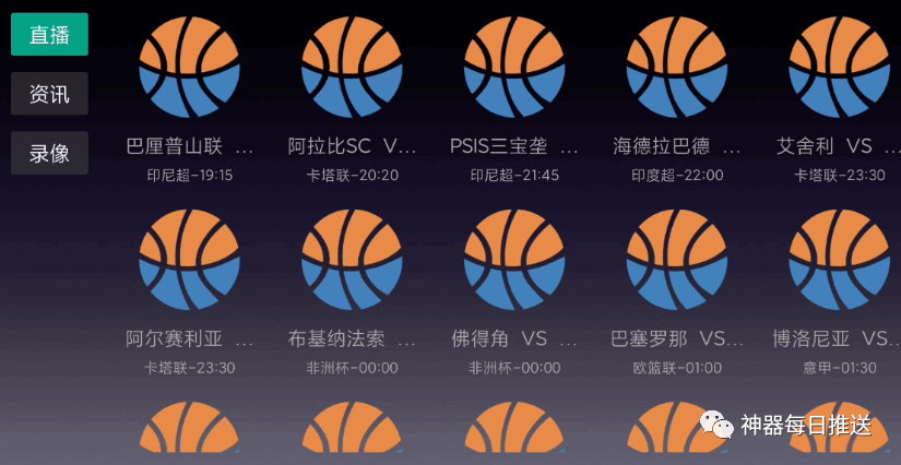 4、支持体育赛事直播、录播,功能还在优化中。尤其是直播赛事解析接口不稳定,需要多次刷新才可以看。