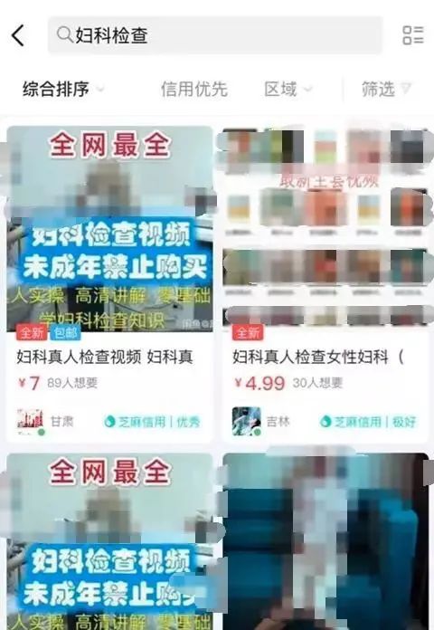 2019年3月,有网友反映, 多名卖家竟然在闲鱼销售名为“妇科真人检查”相关视频, 影响相当 恶劣。