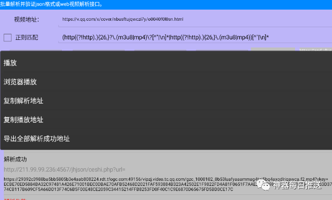 批量解析并验证json格式或web视频解析接口,导出解析成功地址。