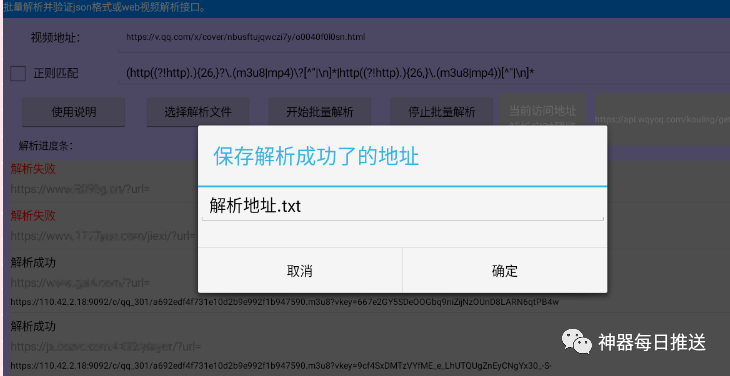 1、TVbox必备工具——批量解析并验证json格式或web视频解析接口,导出解析成功地址。